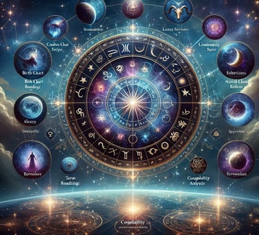 We provide astrology services like birth chart readings, compatibility analysis, tarot readings, and more. Discover our services for guidance